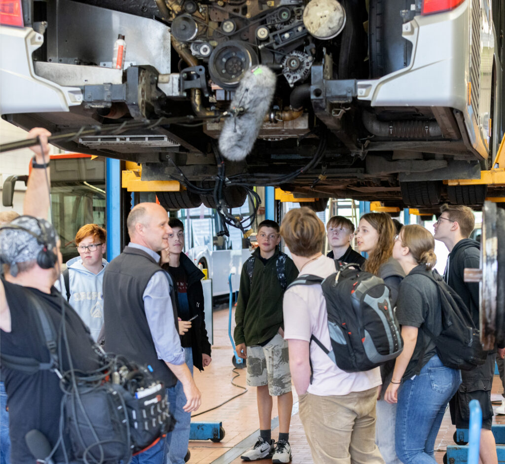Wir bringen Schulklassen in einem Erlebnisbus direkt zu den Unternehmen.